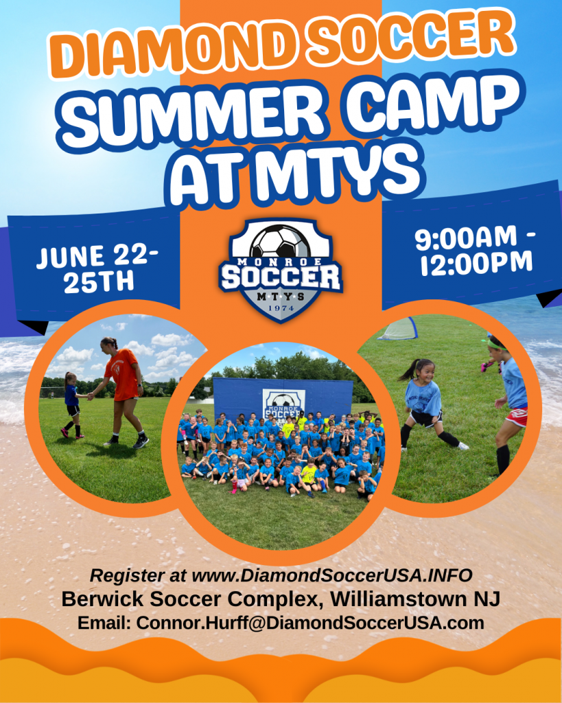 Diamond Soccer offers summer camps at various clubs in south jersey. Our summer 2019 circuit includes Monroe Township Youth Soccer, Clayton Soccer Association, and Pennsgrove Soccer Club.